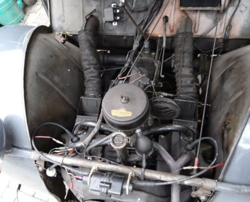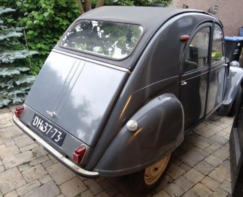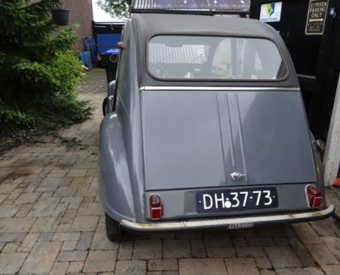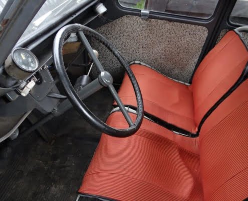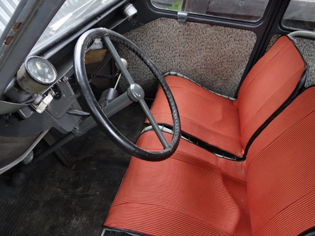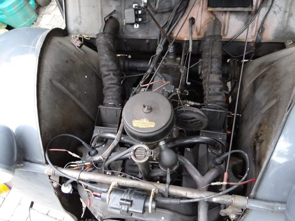 Na 20 jaar neem ik afscheid van deze leuke dame met goed werkende centrifugaalkoppeling. Motor, enz. lopen prima. Heeft grondig onderhoud achter de rug. Zo zijn onder andere vervangen: uitlaat, spruitstuk, motorsteunen, doorvoerrubbers van motorruimte naar koets, remsysteem zoals alle remleidingen en -cilinders. Geen schade of roest. Een nieuw lang dak met kleine achterruit wordt bijgeleverd.